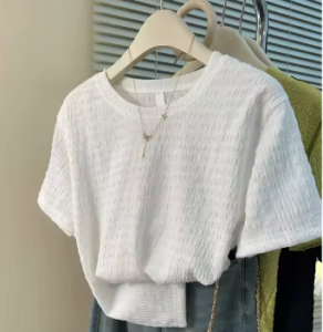 1. 화이트 텍스처드 폴드 반팔 티셔츠 여성 여름 루즈핏